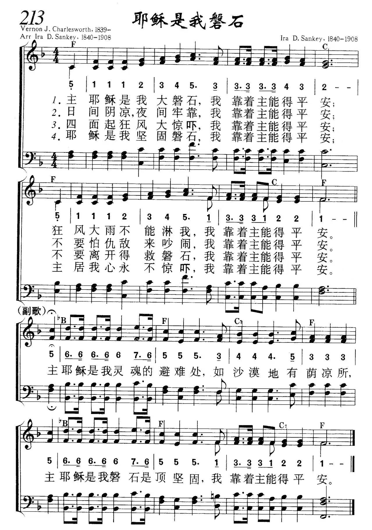 1.主耶稣是我大磐石,我靠着主能得平安;