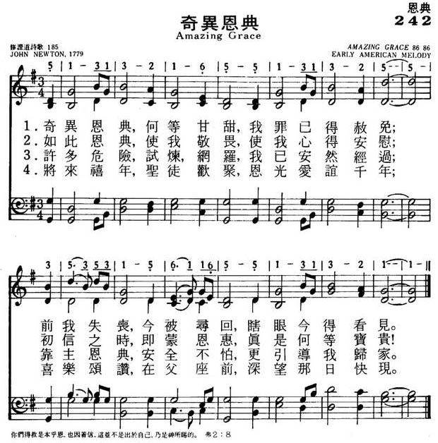 奇异恩典,何等甘甜,我罪已得赦免;